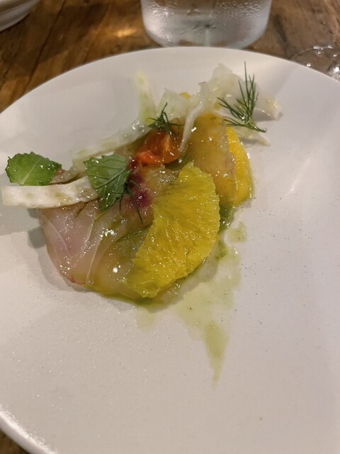コースは7,000円のコースで、グラスワインでナチュールワインを中心に、グラスでお店に任せました。料理全般美味しかった。ワインが進む料理でした。