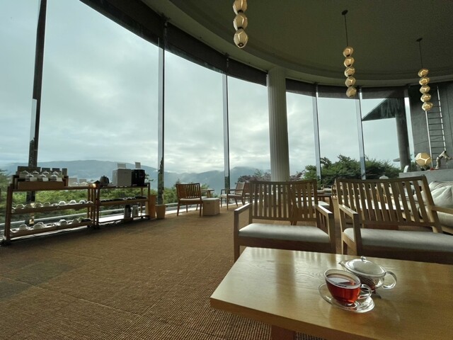館内中を「白檀」の素晴らしい香りが立ち込めています。まずは、ラウンジでお抹茶と和菓子をいただけました。