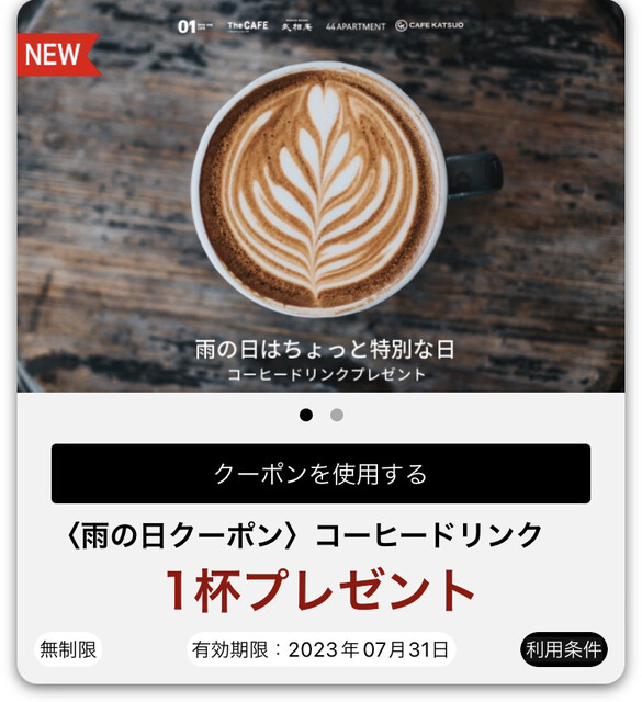店員さんが「アプリを入れて頂ければ、雨の日なのでコーヒーは無料になります」と教えてくれ、