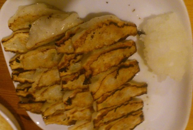 パリっと焼かれた餃子がお皿に並んで出て来ます。