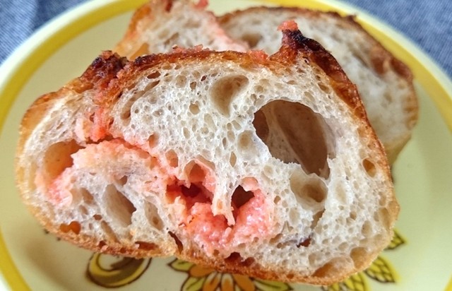パンストック 明太フランスの中身の様子。 fromグリーンロール