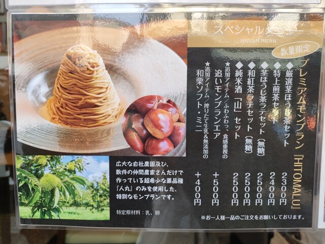プレミアムモンブラン、煎茶付で、2,400円。