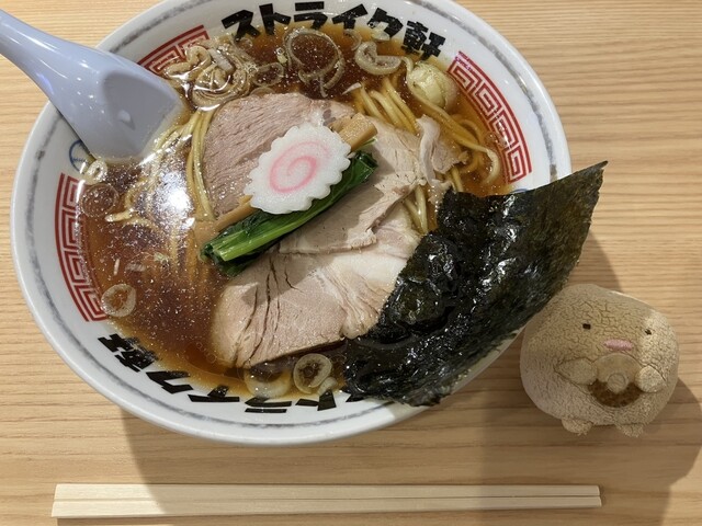 ストライク軒のストレート、オススメされて食べました。器の見た目とかからしてめちゃくちゃラーメン。アニメに出てきそうな懐かしい感じがするザ・ラーメン。あっさりしてて汁、飲み干しました。やさしい味です。あっさりですごくシンプルなのにおいしい、また食べたくなる感じ。近くにあれば良いなと思いました。おいしかったです。