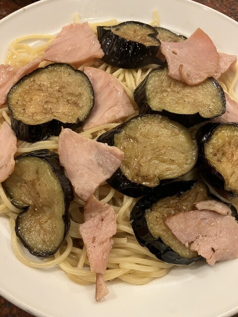 ベーコンとなすのスパゲティ。