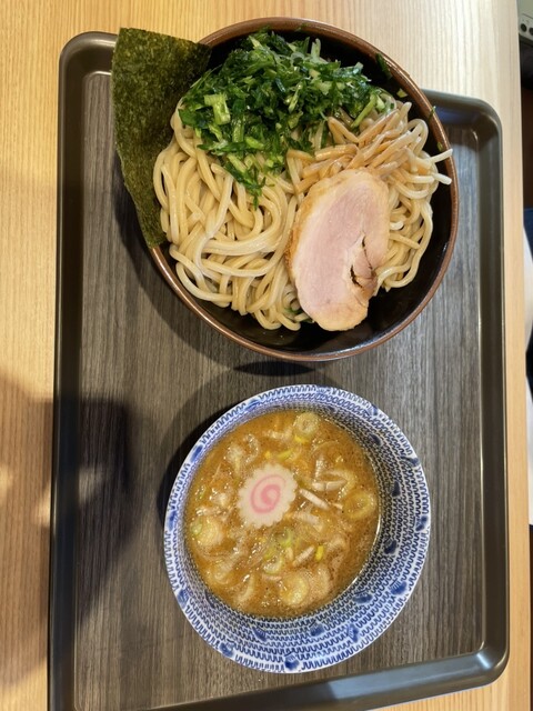 麺は少し細い気味のストレートな麺で生七味の大葉が美味しかったです。つけ汁は何とも言えない甘い味付けで美味しい、また来て何回も食べたいと思えるつけ麺でした。つけ麺はつけ汁をたくさんつけて食べるので食べ終わったときに知るがけっこうなくなってしまいました。