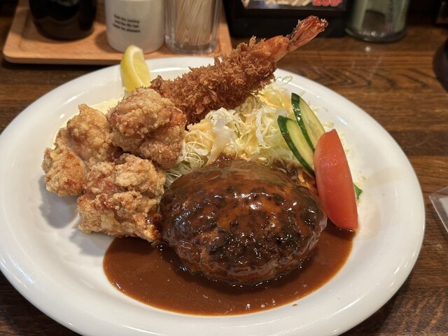 妻はBセット(ハンバーグ・唐揚げ・エビフライ)を注文