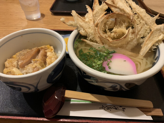 うどんミニカツ丼セットのごぼう天トッピングうどん大盛。
