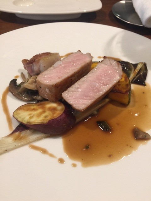 肉料理の豚ロースのステーキも厚みのあるお肉を齧ると