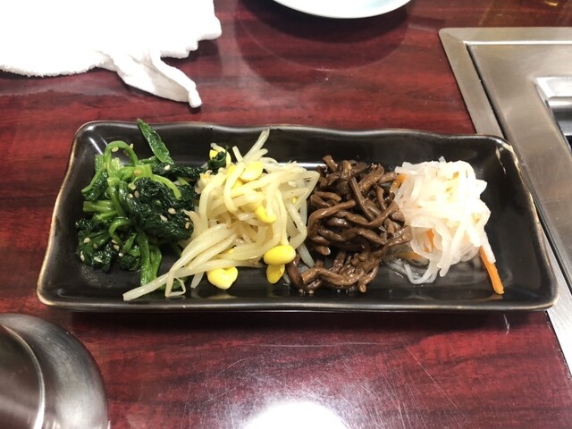カルビにタン塩、サクラユッケ、豚足、ハラミ、ウルテ、ホタテバター、イカ焼きニンニク、丸カブリ焼、センマイ刺し、野菜焼等々、胃がはち切れんばかり飲んで食べましたが一人4,000円いかない位のお会計
