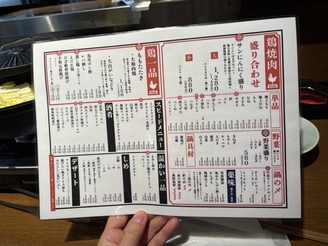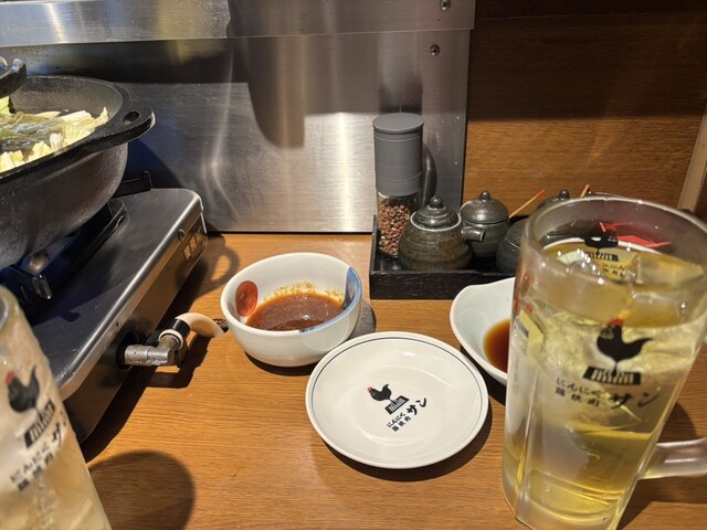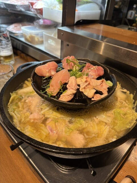 鳥焼肉盛り合わせ大、ももタタキ、レバ刺し、きゅうり一本漬、チューリップ、追加でセセリ、ソリレス、ヤゲンナンコツ、豆腐、厚揚げ、〆の雑炊を注文しました。鶏の脂がお鍋に落ちて、良い感じの出汁になります。にんにくだれも、ポン酢もすごく美味しかったです。