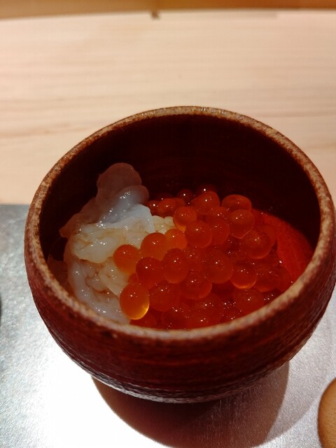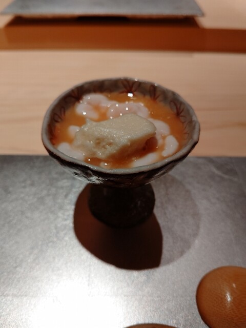 鱈白子…イクラの裏ごし出汁にポン酢の泡のトッピング
