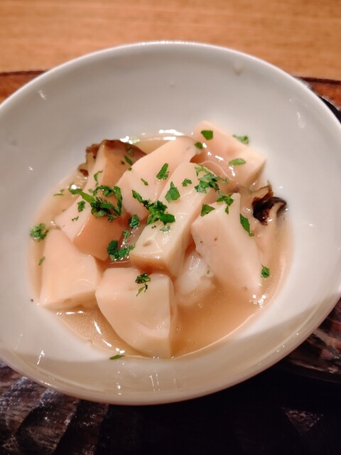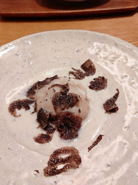 えび芋を炊いて蒸して揚げたもの、黒トリュフの香りが食欲を誘う