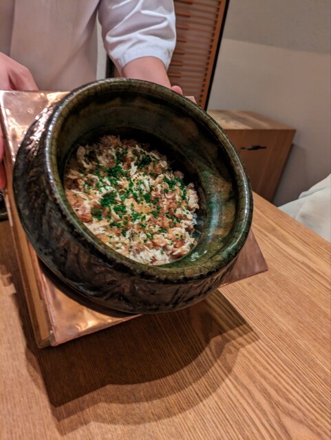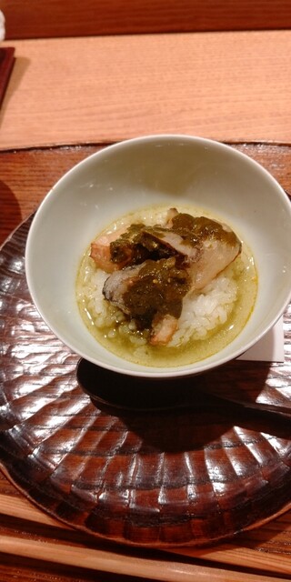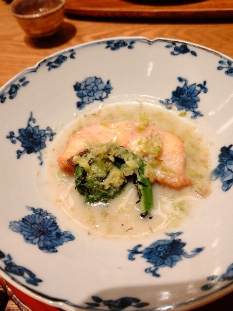 後に続く料理も焼き虎フグとにゅうめんのコラボ、海鼠とコノワタを合わせて旨味だけを引き出した逸品、月の輪熊の肉と野菜を炊き合わせた汁物等々、、、日本酒との相性抜群…お酒は女性スタッフにマリアージュをおねがいした。