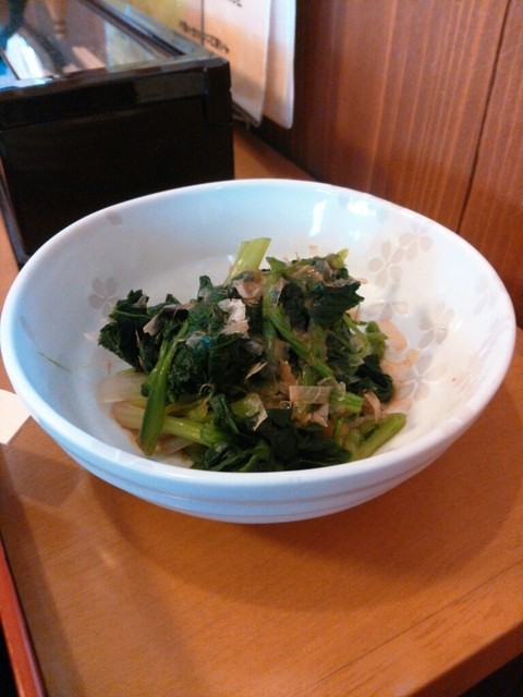 お店の方がサービスでほうれん草のお浸しを出して下さいました。