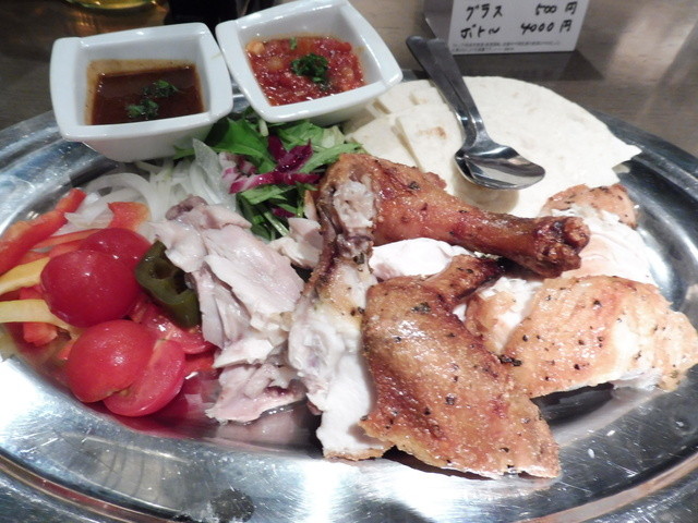 ほどなくして、カウンターへ案内され、ワインとロティサリーチキンのハーフサイズを注文