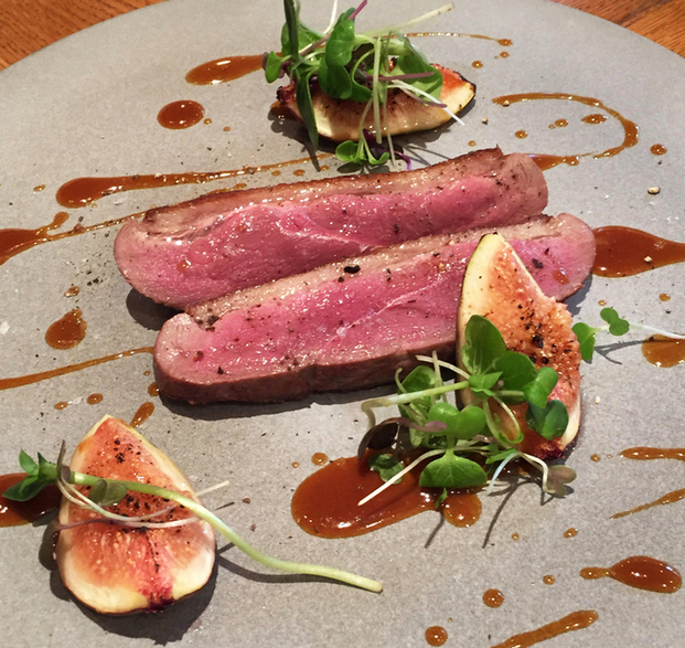津軽鴨のロースト:イチジク添え、ほんのりはちみつの甘さのあるソース◎ ランチセットで¥1800