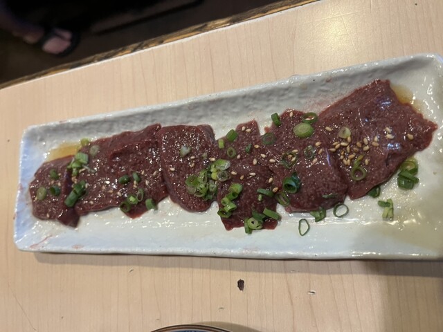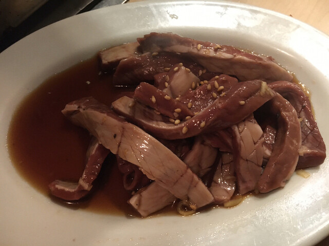 暑気払いに今年初ゆうじ。16時から予約を入れてスタートです。今回は肉ガールとの二人での利用。ハツ刺だけは個人的にマストなのでリクエスト注文。レバーは軽く炙る程度で胡麻油で最高でした。今回塩多め。テール、ハツアブラ、ミノ、ホルモンがオール塩の網焼き。ザブトンとミスジは鉄板にスイッチ。そして大根おろしを挟みタレをつけて旨すぎます。