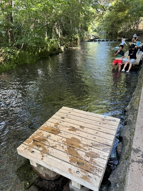 地元民の憩いの場で、(清流版)ジャブジャブ池のイメージ。サンダルで入れば一気にクールダウン出来た。桜家の真横を流れる川でもあるが、そっちは1人分しか座れる場所がないし、日向なので暑い。北に200mほど歩くだけなので、そっちがオススメ。