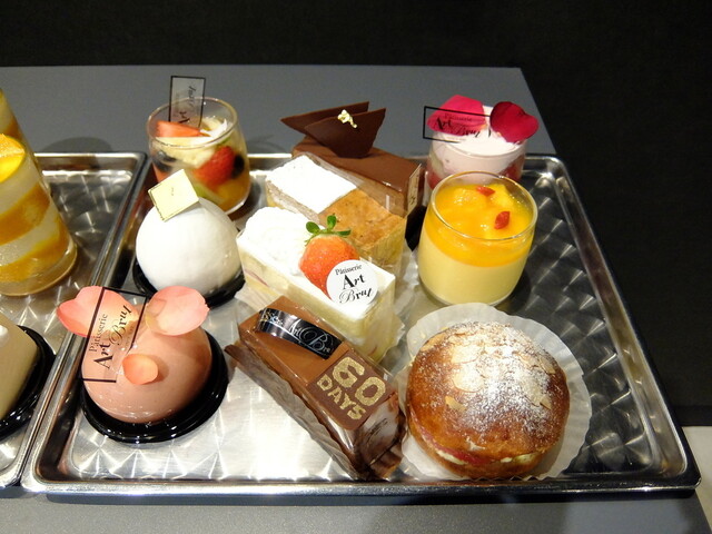 ケーキの一部は贈答にも使わせて頂きました。マニフィニックは表面なめらかでしっとり食感、濃厚な味わいで美味しいですね。ミルティーユ ラバンド(パン)、ブルーベリーとラベンターがはいっています、ダークチョコも入っておりおとなの味わい、お酒にも合うセミハード系のぱんです。パルファン ドゥ イスパハン(ゼリー)は甘さ控えめ、桃実がしっかり入っています。甘さも控えめですが子供さんも好きな味わいですね。
