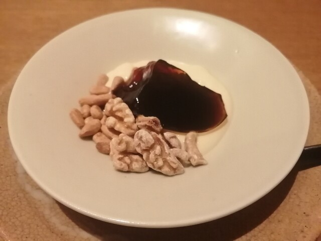 マダラの白子を揚げたもの、キャビア、銀杏