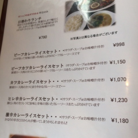 ヒレ辛カレーライスセット 1,230円 (H27.2)