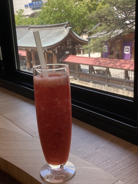 ※接客は丁寧です。社務所ビルの2階にあり、警固神社を訪れる人を眺めながら、お客が少ないため快適にお茶ができます。(2025.05.13.)