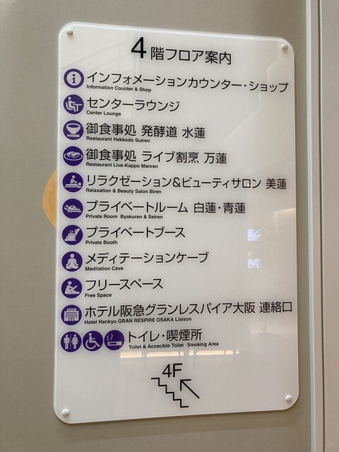 ※お手洗いは店舗外施設内(うめきた温泉 蓮)に有り。