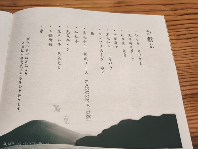 夕食 メニュー