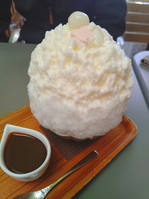 純白の氷に糖みつがかけてあり、別添えのコーヒーみつと練乳をかけていただく構成。