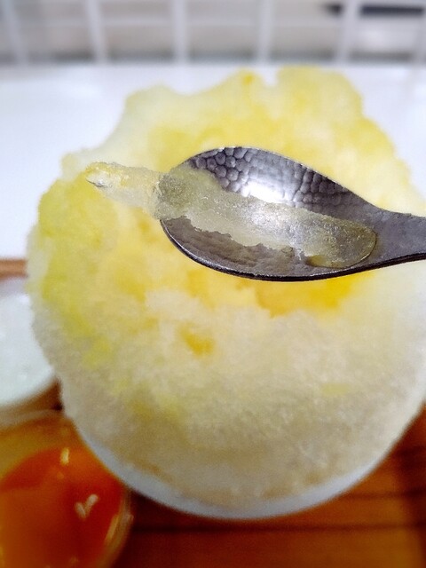 シロップはいつもの如く練乳から果汁シロップに変更していただき、マンゴーをプラスでトッピング。