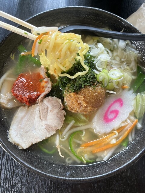 蔵王温泉の帰りに寄りました。11時に着いたので待たずに入店。辛味噌ラーメンを注文しました。感染対策をキチンとしてありアルコールの設置、テーブルにはアクリル板の仕切りがしてあり安心でした。ここの辛味噌ラーメン、変わっていて最初は透明の塩味タンメンみたいです。ここに乗っている味噌と辛味噌を溶かしていく食べ方です。これが塩ラーメン、味噌ラーメン、辛味噌ラーメンと3度美味しい。最後の辛味噌にした時にはからさの中に野菜の甘味がありなんとも美味しくスープまで完食してしまいました。また、途中でこれ以上の辛さはむりかな?と思い辛味噌の半分を辛いの好きの旦那さんに貰ってもらいました。溶かしていって、自分好みの味にできるのも最高ですね。自宅からここまで2時間かかりますが絶対リピしたいラーメン