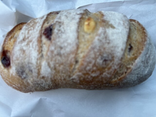 今日は紅茶のクロワッサンなどこの前はなかったパンとチョリソーのパンをチョイス。でもこの前のベリーとチーズの天然酵母のパンがない。と言っていると何かお探し?と聞いてくれました。