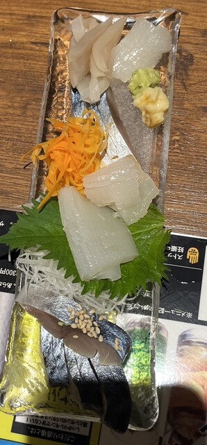 まず店員さんおすすめのイカ刺しシメサバ刺し馬肉の3種盛り