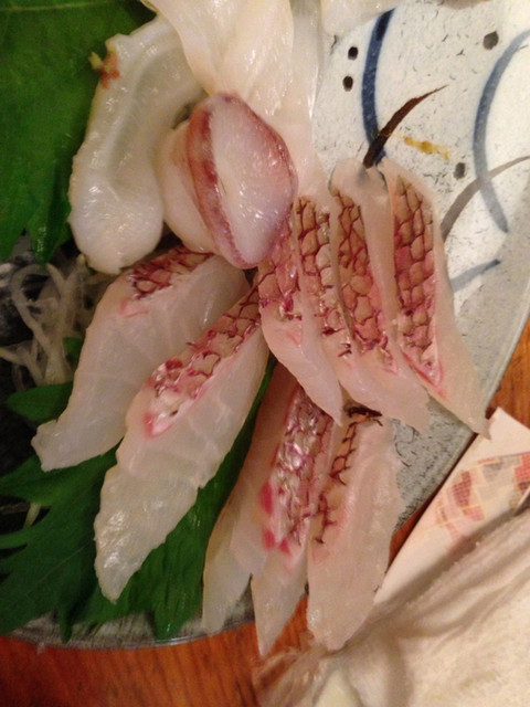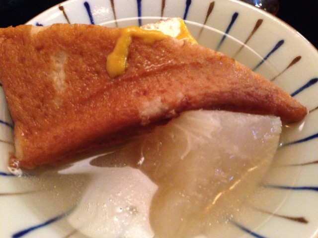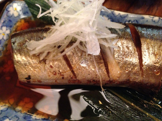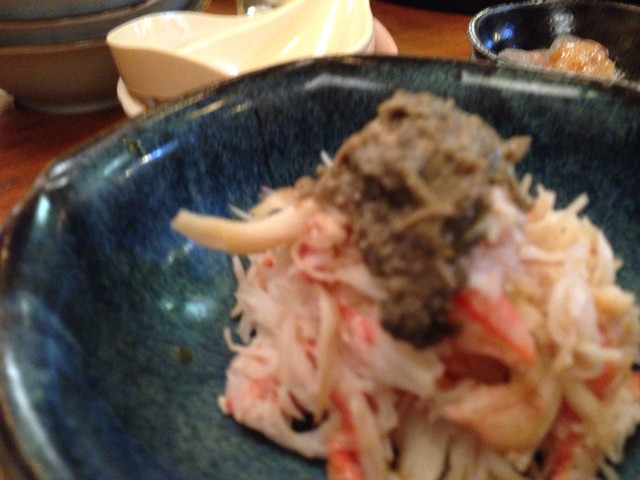 今月のK会は5人参加で始まりました。ここ鳥うおさんは小路の奥にありますが、青森県庁の近くに位置して店内はスーツ姿のお客さんでいっぱいです。今日のコースは2時間飲み放題付き4300円です。先ずテーブルに小鉢が3つあんこうの共和え、もずくのかき卵仕立て、清水川産のなまこ酢、生ビールで乾杯後鴨のスモーク、鳥わさ、鳥のホルモン、白身魚と帆立の酢味噌、蟹と蟹みそ、立て続けに配膳されます。しばらくすると焼き鳥のはつ、カリッカリッに焼いた皮、豚タン、どれも美味しくいただきました。そしておでん鍋が出来上がり、秋刀魚の煮付けです。この秋刀魚の煮付けの柔らかいこと骨まで食べらました。最後に刺し身盛り合わせです。本日のお刺身は、鯛、鯖、んんん〜