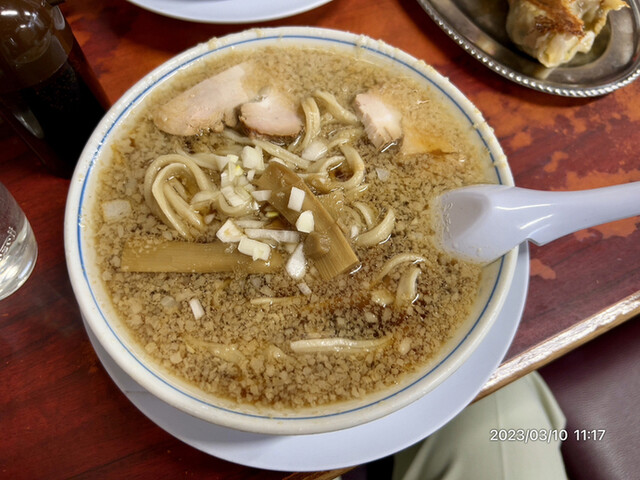 今回も東京から新発田市へ日帰り出張にて車で朝6:00に出発し微調整しながら11:40にお店のデカい駐車場へ到着。11:45から並び大体、前回同様の5番目位。中へ案内され一応メニューを見るもオーダーは決まってました。前回の教訓からネギ増しで注文。割と早めに配膳され気付いたのはネギのカットサイズが前回よりかなりデカく食感が悪そうだなぁ…と。カットする人の技術で変わってしまうのは残念。今回はゴロゴロと食べにくさと妙な苦味が出てしまっていてガッカリ。しかし、基本的には美味いラーメンであり、この界隈では外せない店に変わりはありません。相変わらずのデカい餃子を表現するのにスマホを並べてみたり楽しい食事が出来るのも良いところ。NHKの〇〇カネオ君でも紹介されてましたが更なる開店前の人数が増えなきゃいいなぁと危惧してます。写真は平日の開店前。…カネオ君でやってたけど週末は100人も並ぶとか…❓そこまでして食べ物を手に入れようとは思わないので余りにも並んだら帰る事になりそうで心配です。