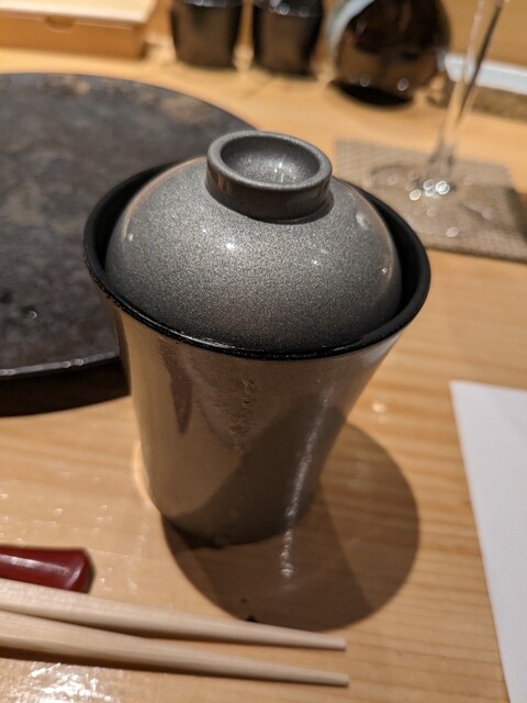 一番最初に出てきた出汁。生胡椒や生姜が効いた黄金スープ