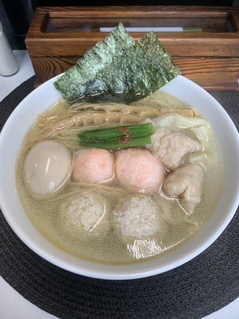 汁なし坦々麺にしようか迷いましたが、ここは塩ラーメン、ワンタン麺にしようか迷いましたが、特製にすればワンタンも入ってるようですので特製で!