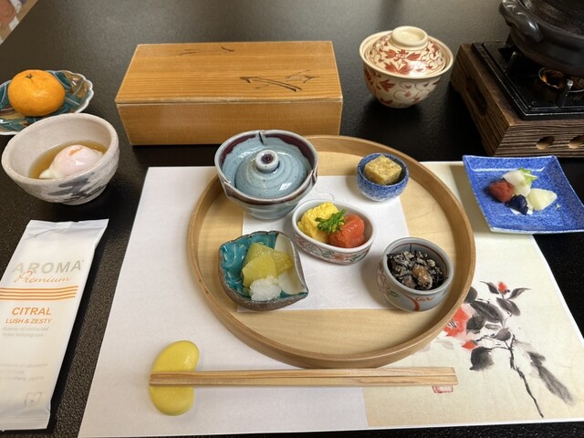 朝食は一品が少量でご飯が進む料理で朝から食べすぎに注意でした。