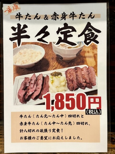 メニューは牛タン、赤身牛タン、味噌カツの3種類。