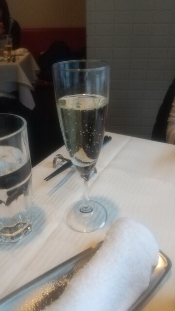 主人はラザーニャ、ドリンクはスパークリングワインを2杯いただきました。