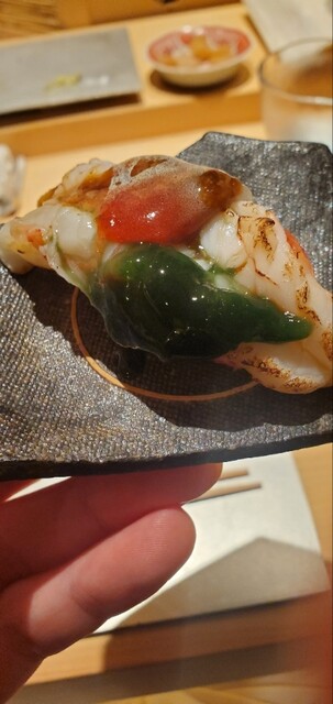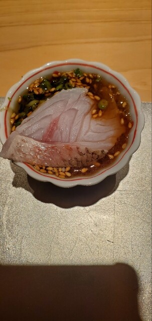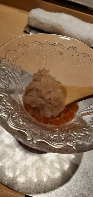 この日も肴からスタート。いくらの漬けとおぼしき先付けですが、いきなり先頭打者ホームランです。これにシャリをあとから加えたリゾット風もすばらしい。他にも次から次へと出てきて撮影が追い付きません笑