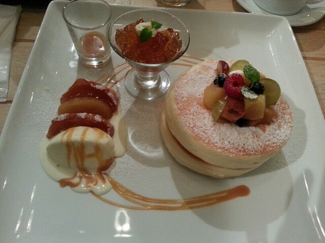 ホームページを拝見させていただきましたが(о´∀`о)記載されている通り、林檎のバターソテーは最高です!皮を剥いたものと皮つきのものとの食感比べ♪あれはアップルパイにも合いますねっ!添えられたバニラアイスはとても濃厚で上にかけられたキャラメルクリームは自家製だそうです。それから気になっていたのはもうひとつ( ☆∀☆)紅茶ゼリーも美味しかったですよ。パンケーキは前回と変わらずふわっふわっ(*^O^*)本当に美味しくてまたすぐに食べたくなります!明日から来年4日まで、お休みらしいので今年、最後に行って来られて良かった…大満足です!また来年も実家帰省中には是非、立ち寄らせていただきたいと思います(*^.^*)♪