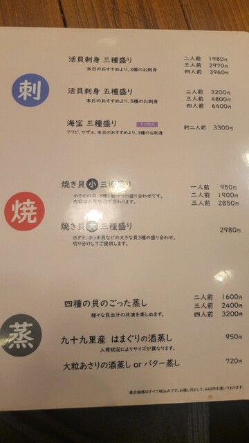 東京でCP良く色んな貝類を生焼く蒸すで食べるなら、