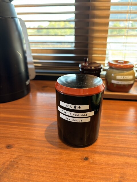 特性出汁+大葉ねぎ、刻み海苔、出汁醤油、山椒