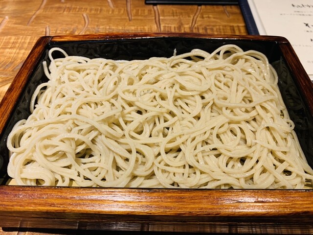細打ちで角のたつ感じでちゃんと水ぎりされています。そばの香りはあまり感じられませんが喉越しの良いお蕎麦です。