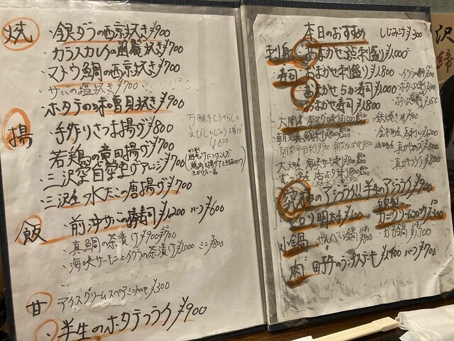 (写真の刺身の盛り合わせはなんと1800円と激安。)