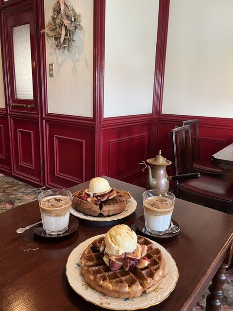 ワッフル生地は甘さ控え目で、こうばしく焼きあがっていましたが、ちょっと焼き過ぎていてザクザクしていました。自分の好みでは、もう少しフンワリ感が欲しかったです。