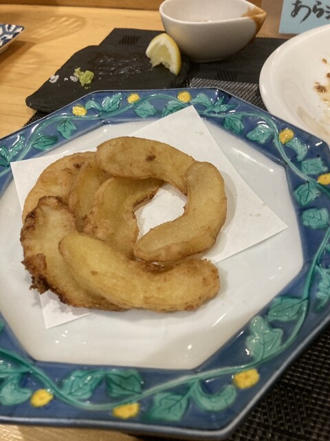 初孫の限定と、りんごの唐揚げやら頂いて満足。