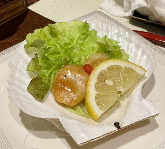 焼物:星空黒牛の炙りと行者にんにくの大根餅