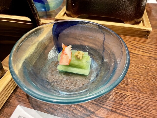 先付:らわん蕗の土佐漬け 蟹身味噌のせ
